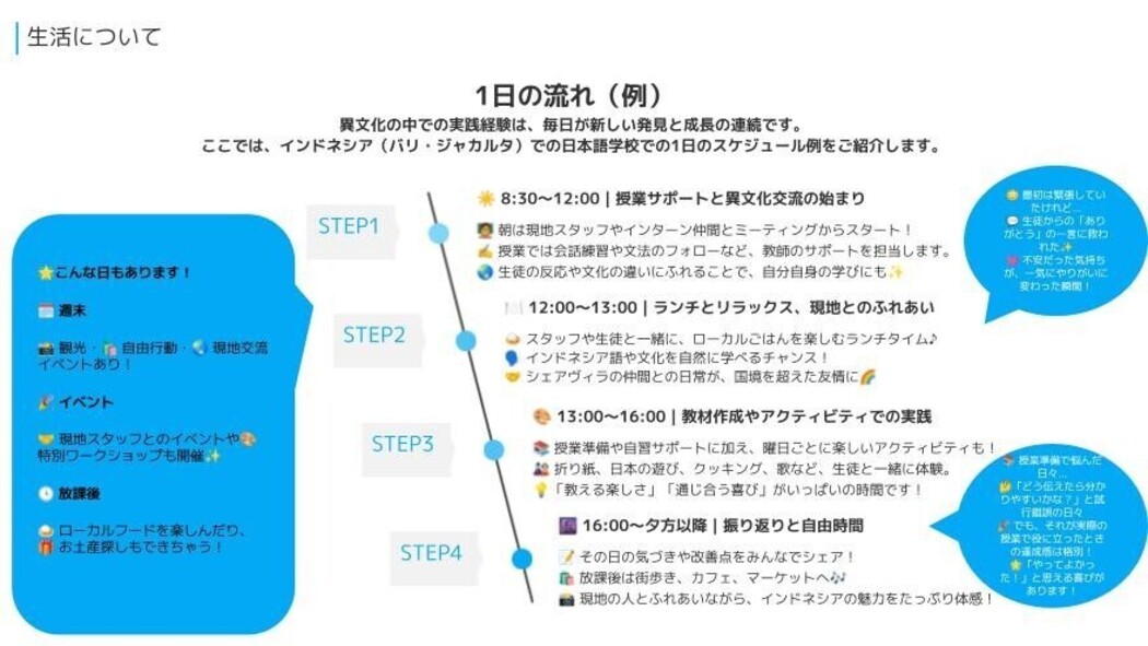 教育現場の実務と異文化体験を通じた滞在型ボランティア・インターンを募集。