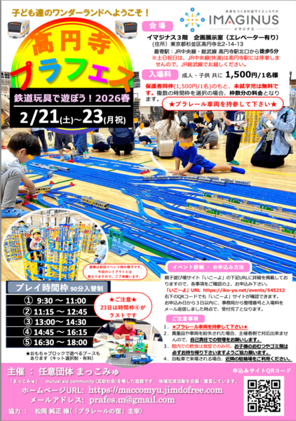 - 【2/23】 杉並区プラレール&レゴイベント ボランティアスタッフ様募集