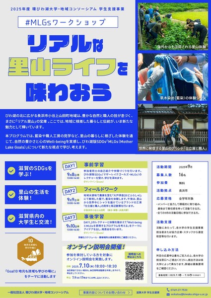 【滋賀県の大学生限定】MLGs里山体験ワークショップ説明会 参加者募集