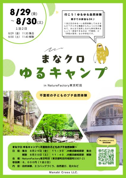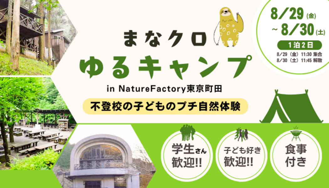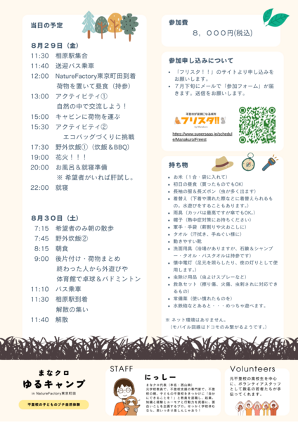 不登校の子どもたちの1泊2日の自然体験イベントのボランティアを募集します。