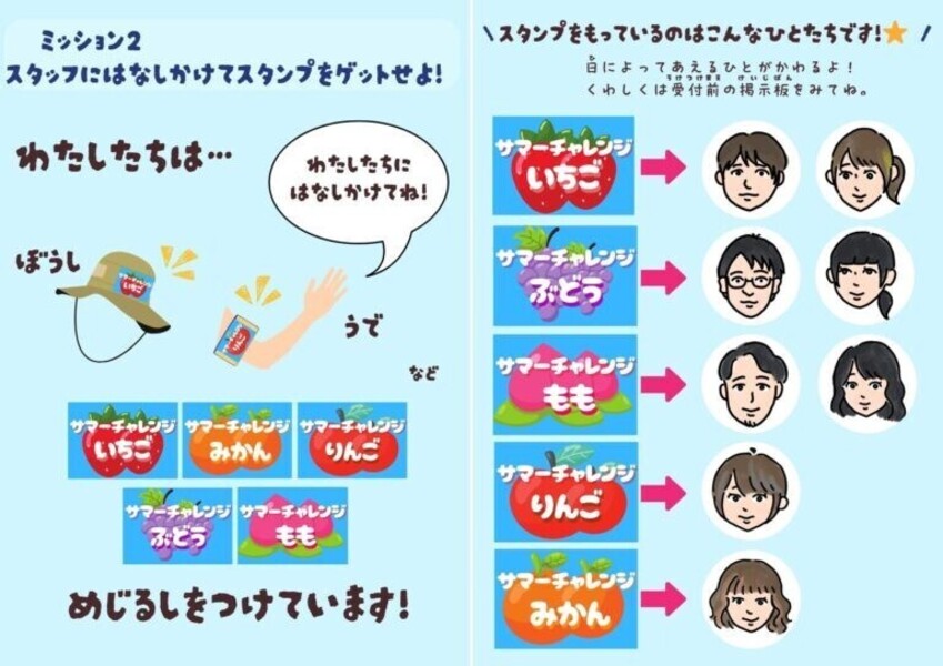 スタッフに話しかけてスタンプをもらえたり、クイズに答えたりと様々なミッションをご用意しています。