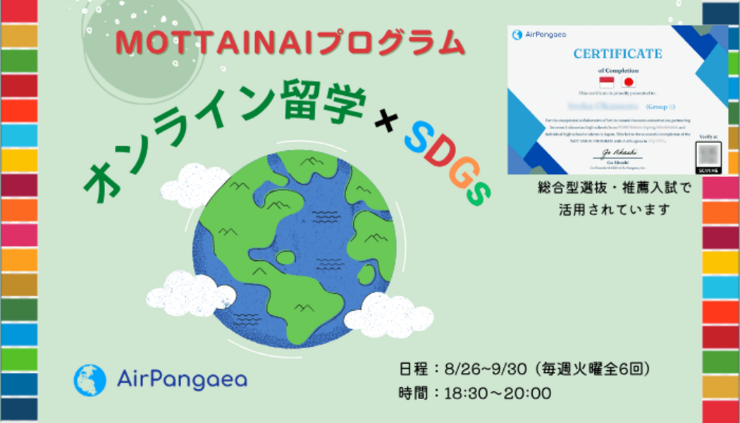 - 【中高生募集:増枠も満席・キャンセル待ち可】オンライン留学×SDGs(6週間)