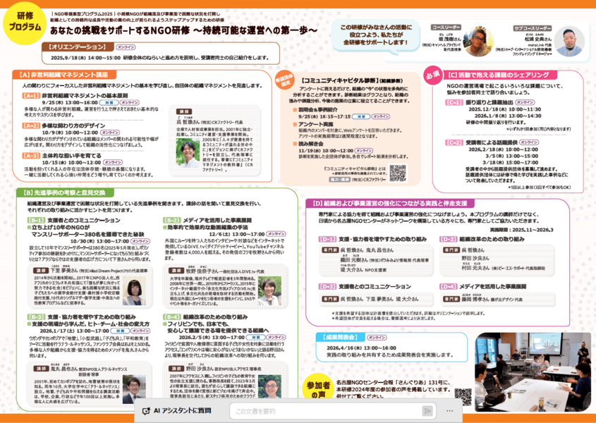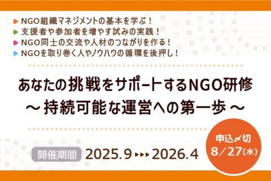 - 無料/ハイブリッド(個人参加可)「あなたの挑戦をサポートするNGO研修」2025