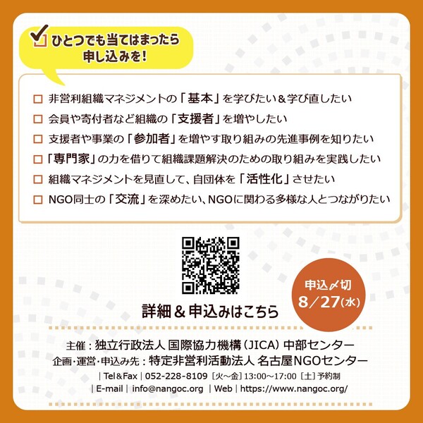 この募集の受入法人「名古屋NGOセンター」をフォローして、