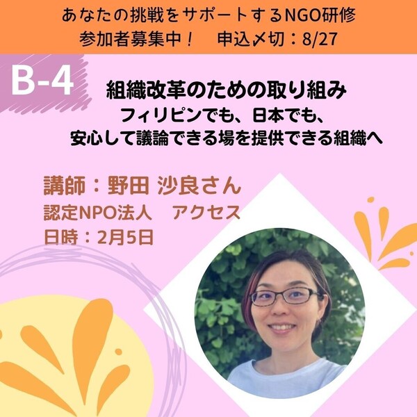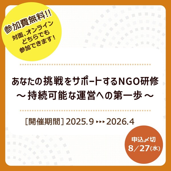 無料/ハイブリッド(個人参加可)「あなたの挑戦をサポートするNGO研修」2025