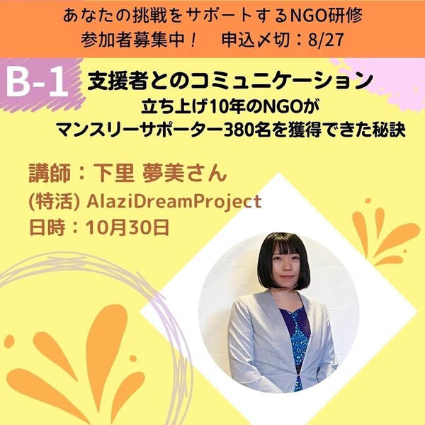 ◎講師:下里夢美さん (特活)AlaziDreamProject(アラジ)代表理事