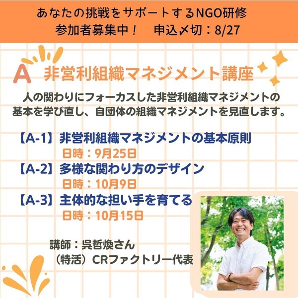 [A-1]非営利組織マネジメント 9/25(木)13:00~16:00 (対面&オンライン)