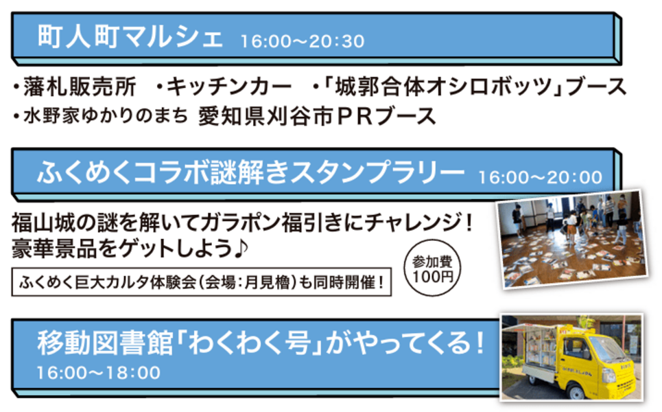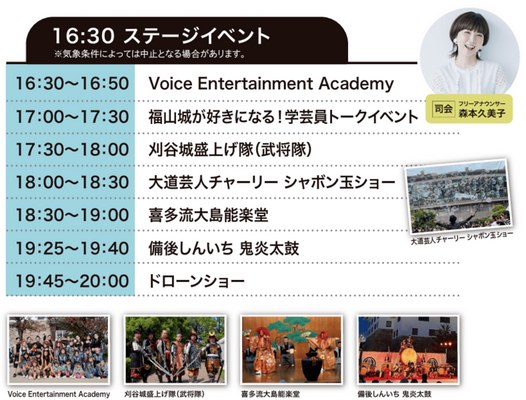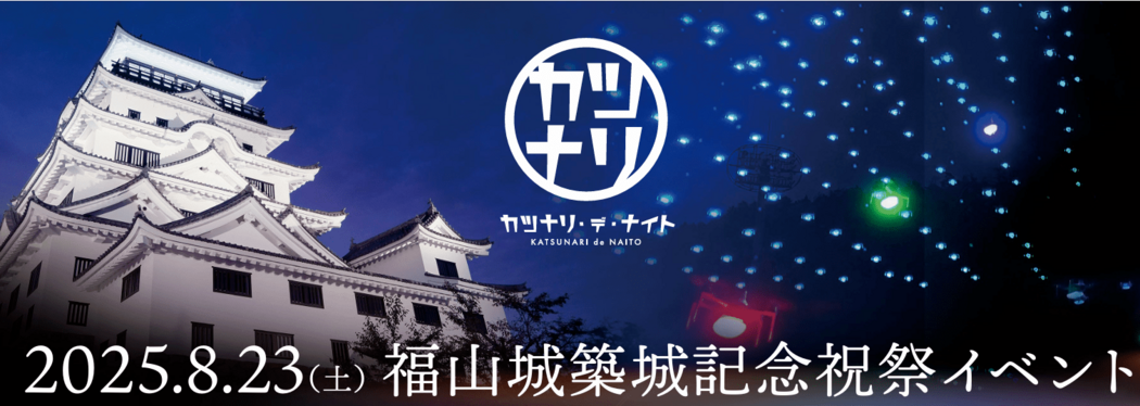 8/23(土)福山城築城記念イベントカツナリデナイト開催!16:00から天守前広場は様々なイベントが開催されます。
