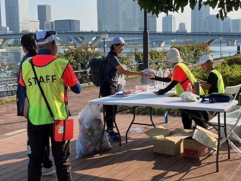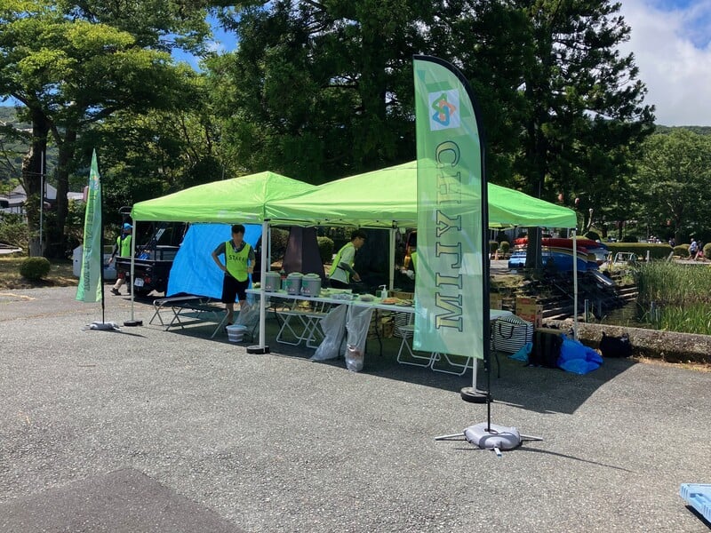 ボランティアさんの活動内容はエイドステーション活動のサポートになります。具体的には受付補助やエイドでの給水補充や給食サポートになります。また参加者に声をかけて応援してもらうこともあります(「頑張ってください!」などの声かけ)。
