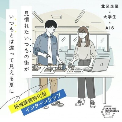 赤羽イノベーションサイトでは、北区内の大学生を主な対象に、行政や地域の企業と連携し、視野を広げながら、地域課題に着目し、あらゆるキャリアの選択を考えるためのインターンシップ企画し、実践的な学びの場を提供しています。