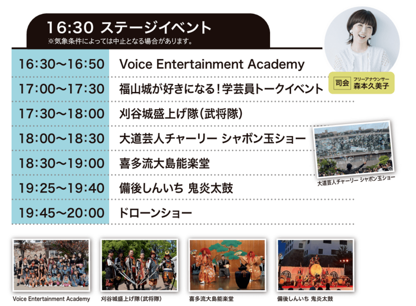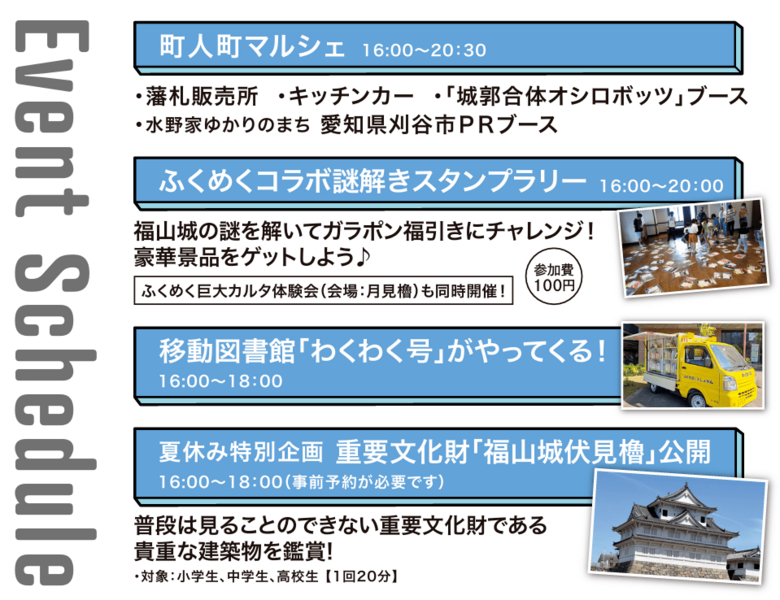 8/23(土)福山城築城記念イベントカツナリデナイト開催!16:00から天守前広場は様々なイベントが開催されます。
