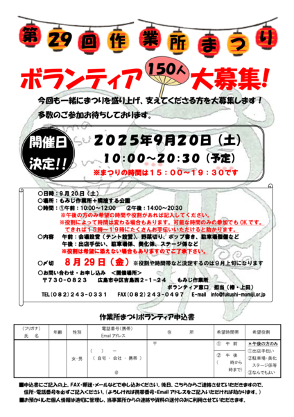 もみじ作業所まつり開催にあたりボランティア募集しています!