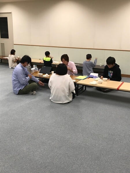 学習の途中に夕食タイムあり。手作りのおいしいご飯をみんなで食べることも大切にしています!スタート前の説明会あり。初心者も大歓迎!
