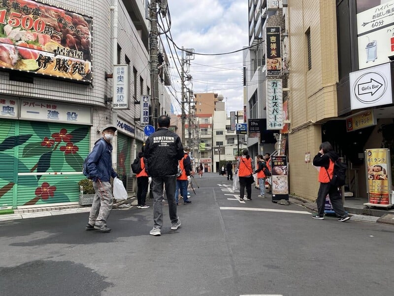 JR西川口駅西口の交番前に集合し、あいさつ・説明があり、その後、清掃活をを実施。まちに繰り広げていきます。その際、危険な場所があったり・倒れている人や困っている人がいれば、みんなで対応していきます。※危険な場所・箇所があった場合は運営にご報告ください。
