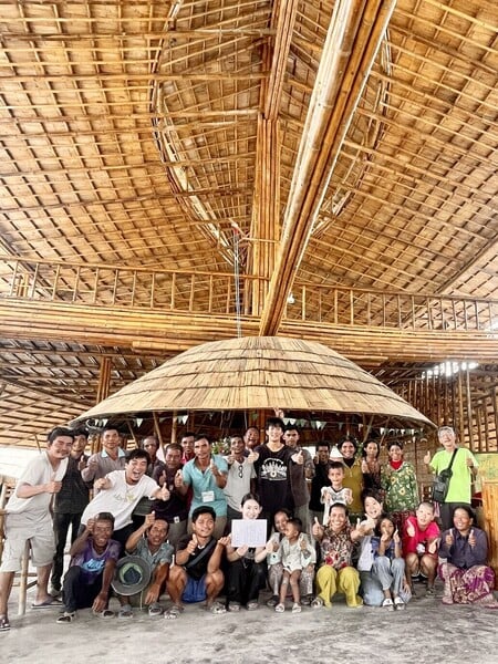 カンボジアでは30人しかいないプロの竹建築職人さんを呼び、たくさんのことを教えてもらいながら確かな竹建築が進んでいます。