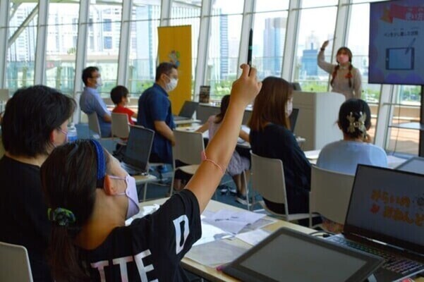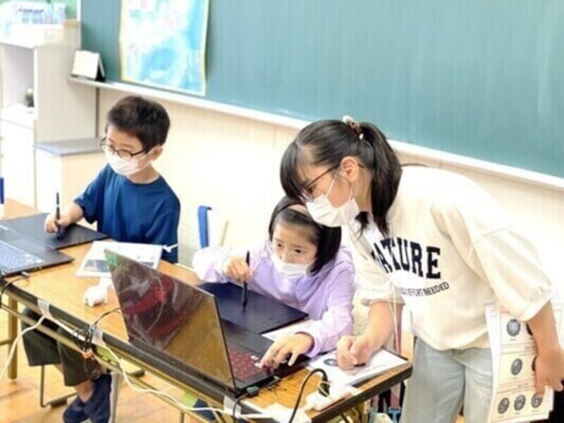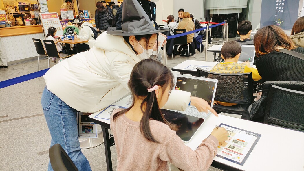 サポートスタッフの方にも、ペンタブレットの使い方とCG制作方法のレクチャーをお子様にして頂きます。