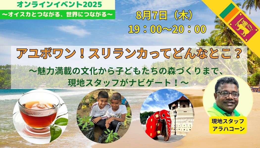 オイスカは、1970年代からスリランカに開発団員を派遣し、農業人材の育成や、技術普及を実施してきました。現在は、訪日研修を受けたコーンさんを中心にOBたちがコーディネーターとなり、主に「子供の森」計画*の活動に取り組んでいます。当日は、日本語が堪能なコーンさんが、現地からスリランカの魅力をたっぷり紹介!国旗、食べ物、おすすめの紅茶や観光地までローカル目線でお伝えします。それに加えて、現地で取り組むオイスカの活動ものぞいてみます!