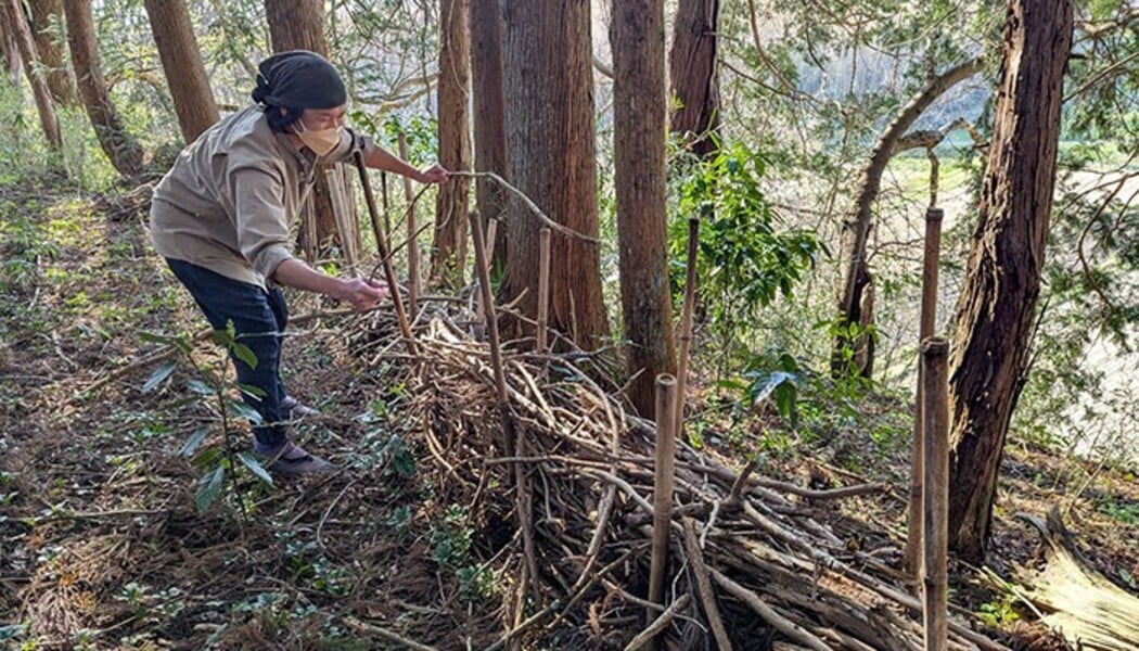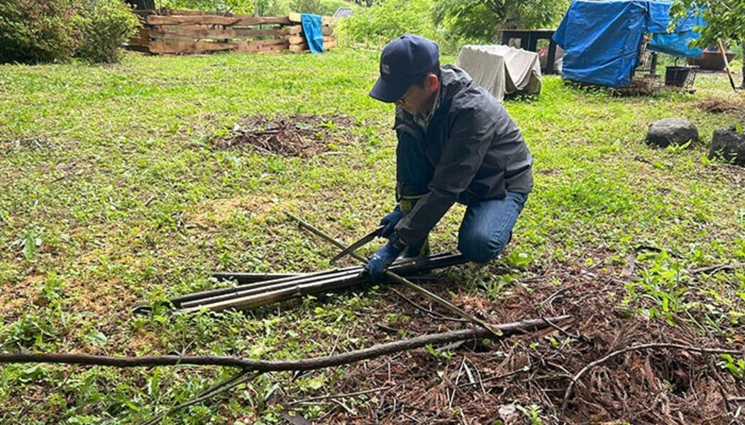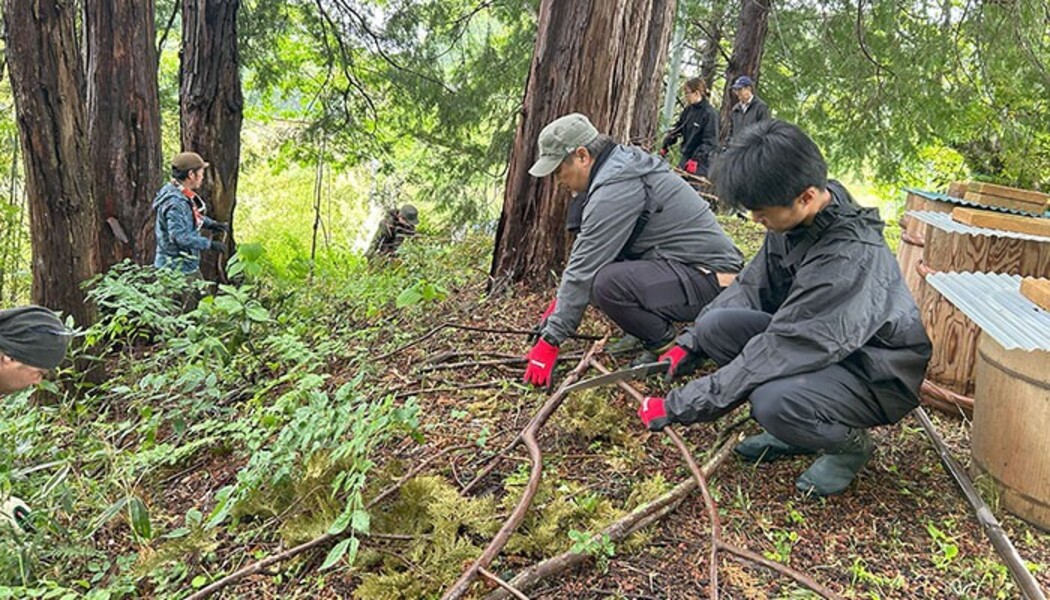 ※草刈り機がない方は、鎌やハサミを用いて、雑草や絡みついた蔓の除去を行います。