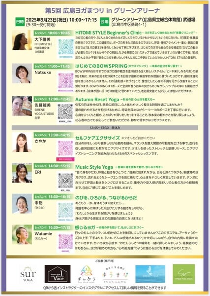 9月23日(祝日)の「第5回 広島ヨガまつり」に当日スタッフとしてお手伝いしてくださる方を募集します!