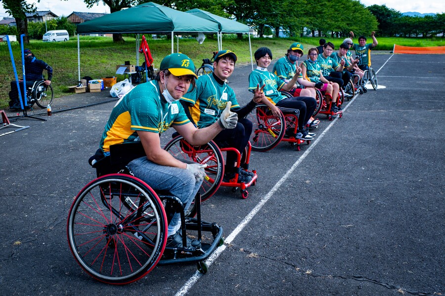車椅子ソフトボールは競技の性質上、健常者も車椅子に乗ってプレーするため、競技用の車椅子のほか、ボールなどの用具も必要です。