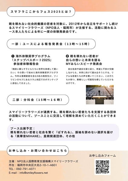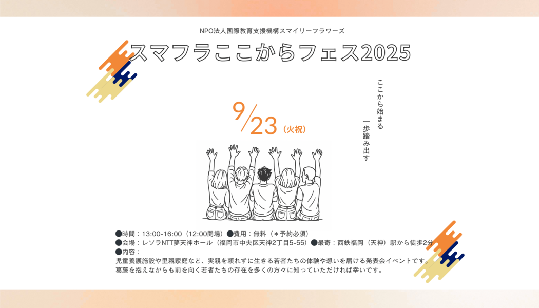 児童養護施設や里親家庭など、実親を頼れずに生きる若者たちの体験や想いを届ける発表会イベントです。葛藤を抱えながらも前を向く若者たちの存在を多くの方々に知っていただければ幸いです。