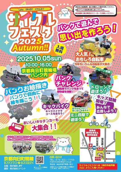 おもしろ自転車やバンクチャレンジに加えて、バンクでお絵描き、ドローン体験など「サイクルフェスタ2025」子どもの笑顔があふれるイベントづくりをお手伝いしてくれませんか?