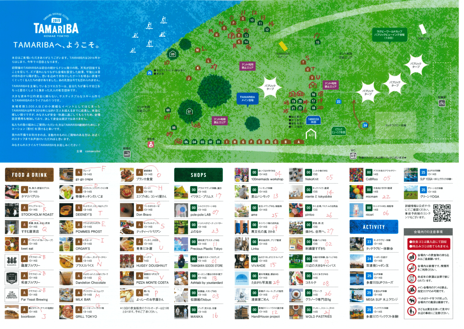 そんな想いから建築、デザイン、出版、音楽、飲食、ITなどで仕事をする仲間たちが集まり、2016年から多摩川でリバーサイドフェス「TAMARIBA」がスタートしました。