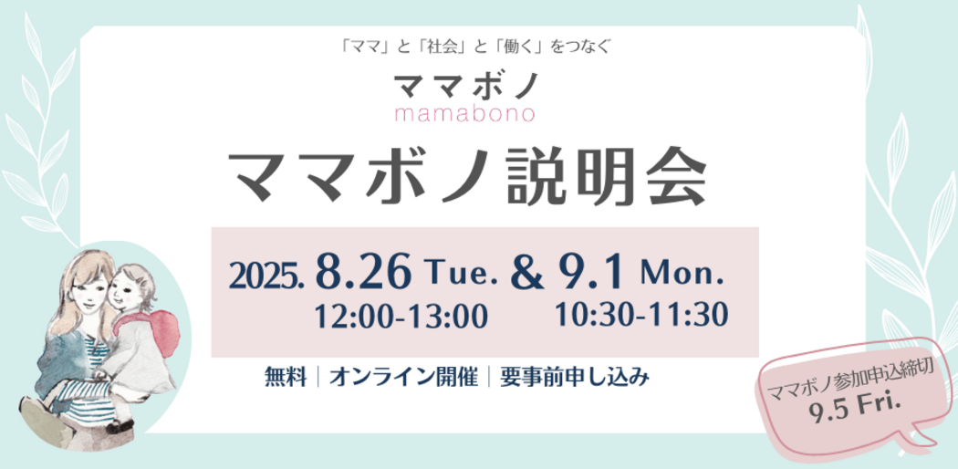 - 育休・離職中ママが“社会とつながる”体験を!ママボノ説明会