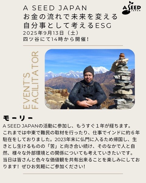 - <イベント>お金の流れで未来を変える 自分事として考えるESG