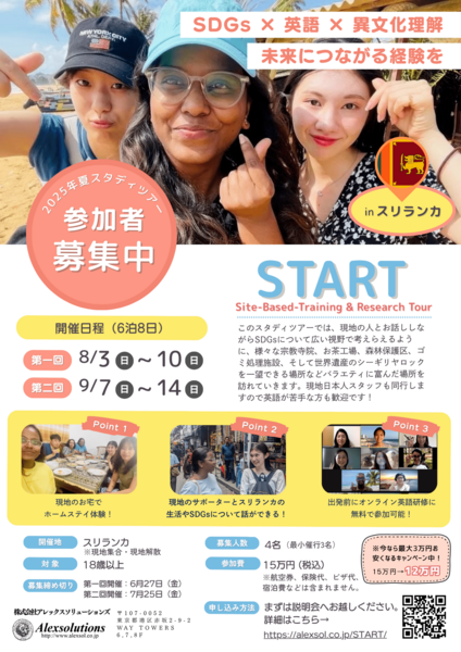 さらに、GOAL参加者100人達成を記念し、「現地の方と英語で交流したい!!」という声にお応えするべく、実際に現地でSDGsについて知る機会を得られるスリランカ拠点でのスタディツアーを開始致しました。