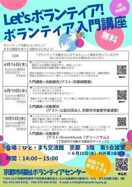 【6月15日(月)~7月31(金)】Let's ボランティア! 入門講座【配信】