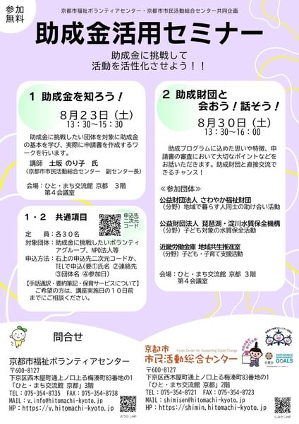 - 助成金活用セミナー 8月23日(土)・30日(土)ボランティア・市民活動団体対象
