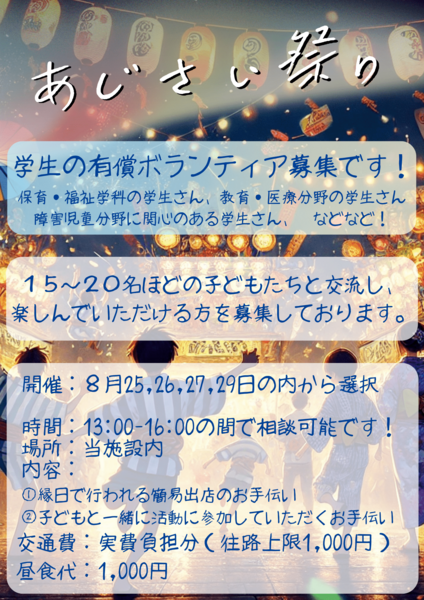 - 【有償ボラ@世田谷】施設内での夏祭りイベント!20名以上の児童が集まります♪