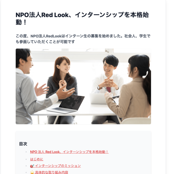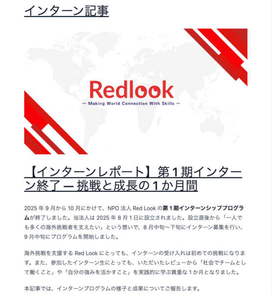 ※ 前回のインターンの感想等は当法人サイトにあります「NPO法人 Red Look インターン」