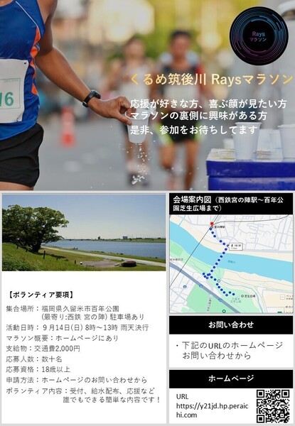 - 9月14日にくるめ筑後川で開催されるマラソン大会運営のお手伝いをできる方募集!