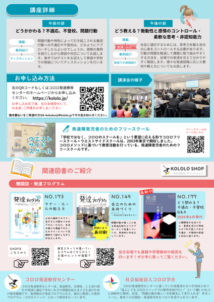 発達障害児の不登校・不適応をテーマとした支援者・学校関係者・保護者向けの講座運営のお手伝いをお願いします。午前・午後のどちらの講座でもOK。受付業務終了後は講座を無料でご受講いただけます。(午前・午後どちらもOK)