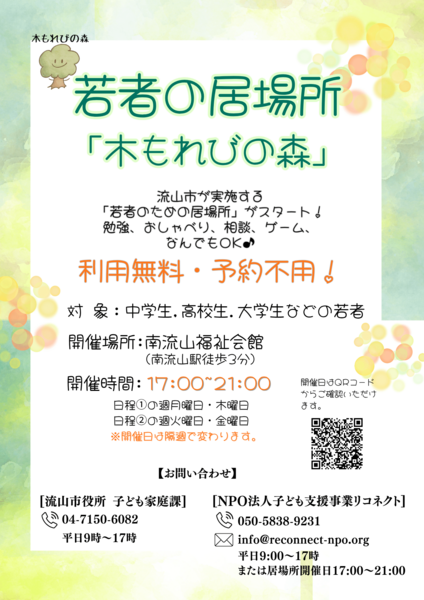 - 中高生の居場所支援ボランティア募集!【木もれびの森】
