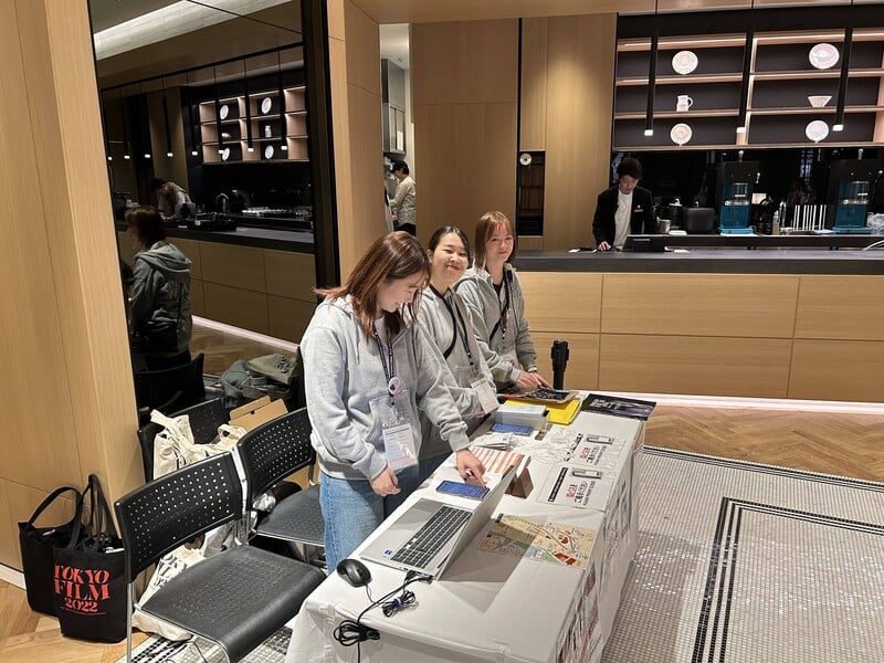 主な仕事は、東京ミッドタウン日比谷の1階にある、映画祭の交流ラウンジにお越しになるお客様の受付や、そこで行われるイベントの運営サポートです。