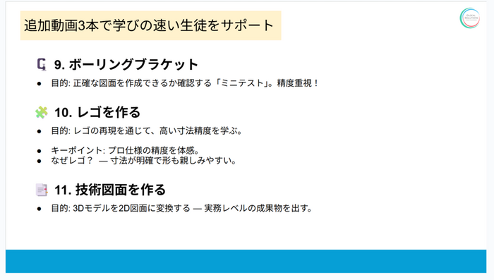 オンライン国際交流を通して、世界の生徒たちと共にプロジェクトに参加し、協働しながらプロジェクトを進めていきます。英語での自己紹介と発表によるコミュニケーション力、国際協働力、共感力が身につきます。また、世界の生徒たちが、どのようにデジタルものづくりに取り組んでいるか、最先端の技術やスキルを共有することもできます。