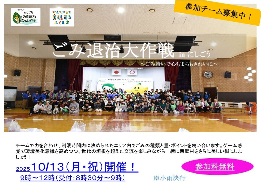 - 「ごみ退治大作戦inにしごう」参加者チーム募集!