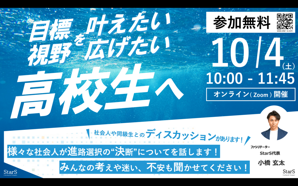 社会人の”人生を決めた決断"を参考に、高校生の視野を広げるオンラインイベントを開催いたします!