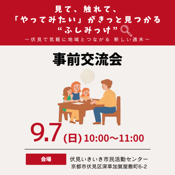 9月7日(日)の事前交流会は伏見いきいき市民活動センターにて実施します。 |