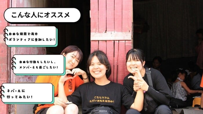 ボランティアに参加するメンバーの動機は千差万別で、「友達をつくりにきた」「不甲斐ない自分を変えにきた」「世界を広げにきた」「子どもに会いにきた」などです。