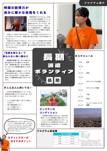 - 海外ボランティア派遣:大学生や若者向けに、短期〜長期の派遣プログラムを提供