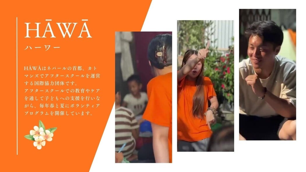 HĀWĀは、ネパールと日本を拠点に、教育・福祉・働き方の現場で"風通しのよさ"を追求する国際協力団体です。スラムの放課後教室や海外ボランティアプログラム、国内での若者支援や企業研修など、枠にとらわれない形で「生きづらさ」に向き合い、誰もが健やかに生きられる社会づくりを目指しています。