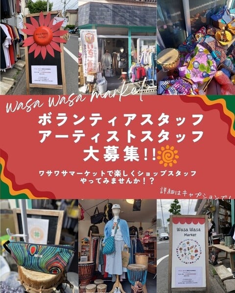 - チャリティーショップ"ワサワサマーケット"ボランティアスタッフ募集