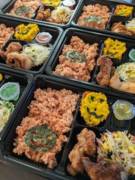 毎月約40名程の親子が来られ、ご飯を食べながらゆったりとした時間を過ごしています。提供するメニューは月変わりで、今月はハロウィンメニューです!
