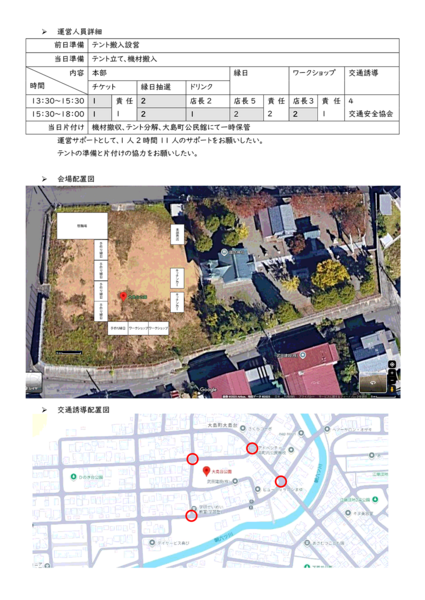⑤10/12(日)9:00~フル参加の方は運営準備を行います。13:00~運営のみ参加の方はこの時間から参加して下さい。19:00イベント片付け終了後お礼をお渡しし解散となります。