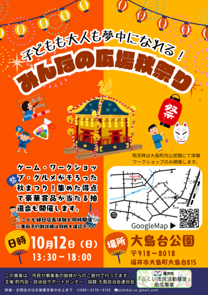 【開催日時】2025年10月12日(日)9:00~19:00(9:00~12:00 準備・13:30~18:00 秋祭り・18:00~19:00 片付け)