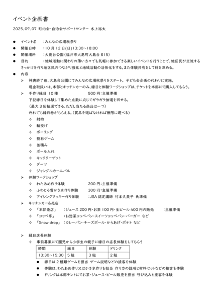 ③顔合わせをかねて9/28(日)10:00~12:00にイベント運営説明会を行います。参加が難しい方は個別に顔合わせをさせて頂きたいと思います。